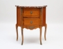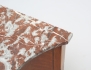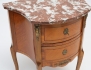 faner med intarsia, ornament och beslag i mässing, två lådor, marmorskiva, höjd 75, bredd 66, djup 38 (skivan med skada)