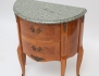 fanerad i olika träslag, intarsia, ornament och draghandtag i patinerad mässing, profilerad marmorskiva, två lådor, höjd 73, bredd 60, djup 31