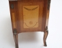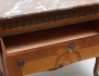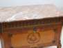 fanerad i olika träslag, intarsia, tre lådor, gjutna ornament och beslag i mässing, profilerad stenskiva, höjd 84, bredd 94, djup 53