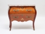 rutfanerad med intarsia, två lådor, ornament och beslag i mässing, profilerad marmorskiva, höjd 72, bredd 81, djup 38 (nyckel saknas)