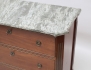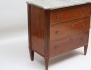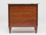 mahogny, snedställda hörn med kannelyr, tre lådor, lister och beslag i mässing, profilerad marmorskiva, höjd 90, bredd 91, djup 49 (smärre bruksslitage, lister saknas)