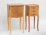 varav en fristående, fanér med bandintarsia, vardera tre lådor, beslag och ornament i mässing, höjd 66/69, bredd 28/38 (fläckar, slitage)