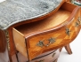 rutfanerad mahogny, bandintarsia tre lådor, beslag i gjuten mässing, profilerad marmorskiva, höjd 81, bredd 90, djup 47 (smärre fanerbortfall)