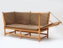 soffa "Tremme" modell 1789, Fritz Hansen, bok, lösa plymåer, etikettmärkt 0763, höjd 86, bredd 160, djup 72 (torr stoppning, framsida sarg med mindre avslag, tyg med skador/fläckar)