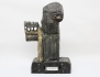 bemålad träskulptur, "Tant Augusta", (Tant Augusta var ett "original" från Jönköping 1930-talet) monogramsignerad, lös sockel medföljer, höjd 72, bredd 46 (väderbiten)