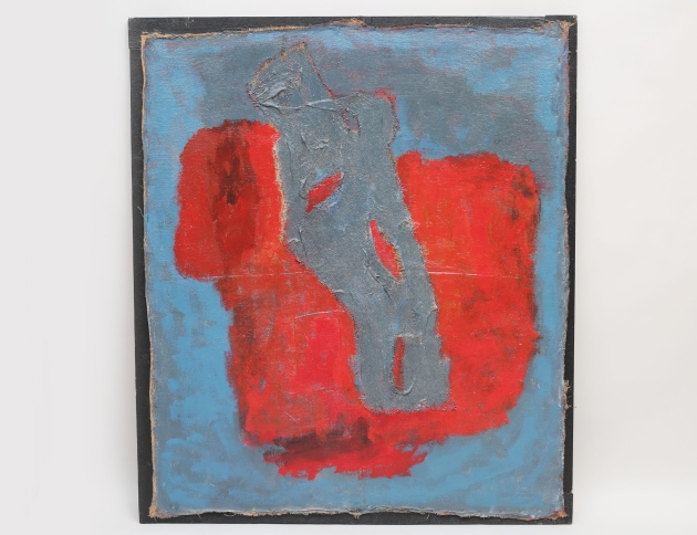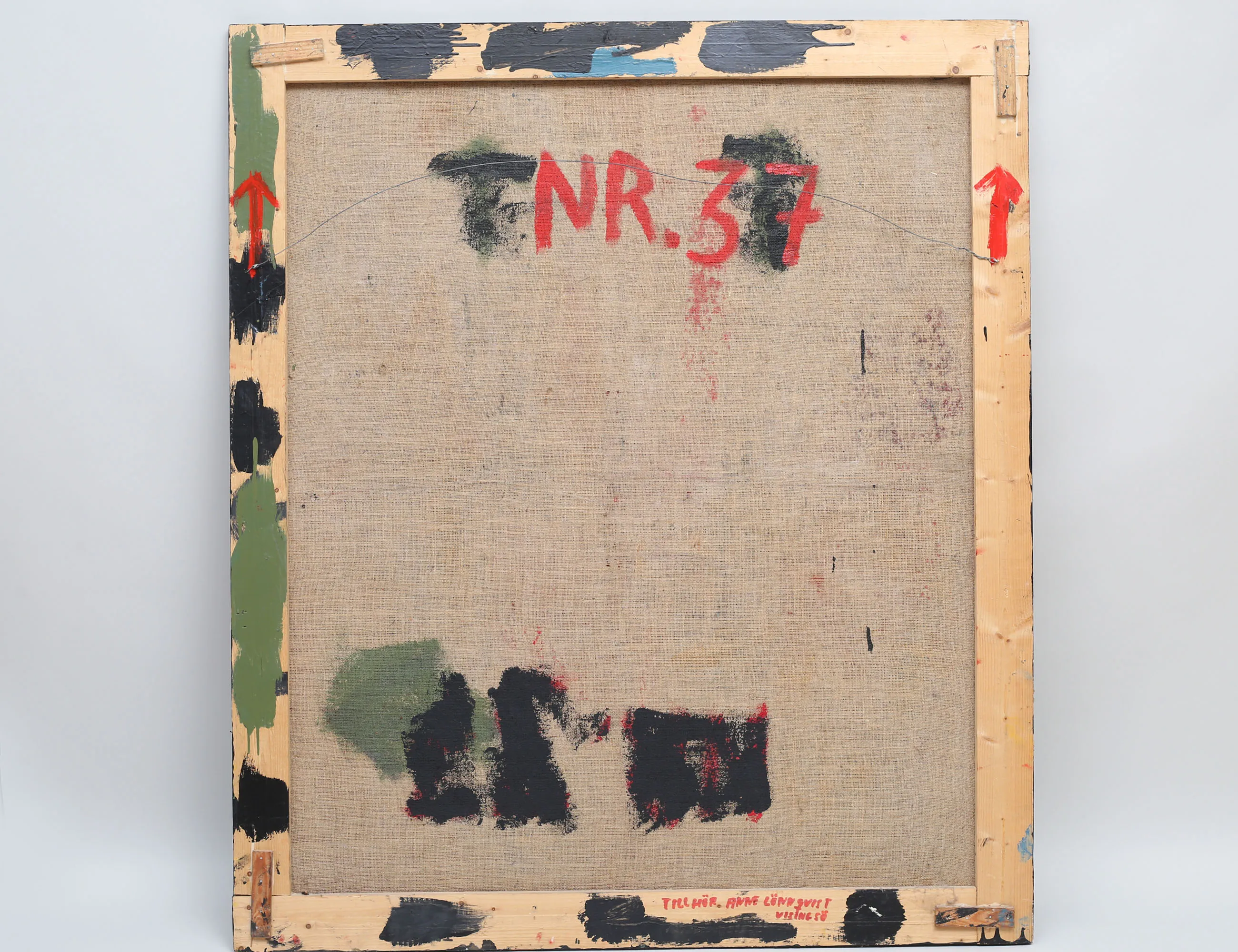 oljemålning på kraftig väv uppspänd på träram, komposition i rött och blått NR. 37, monogramsignerad, 145x124, rammått 152x131