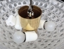 takplafonder 1 par 1960/70-tal, gjutet glas i relief, elmontering i mässing, 3 ljuspunkter, etikettmärkt Öia samt Orrefors, nr. 1731, höjd 22, diameter 36