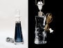 bordslampa gjutet klarglas, signerad och numrerad 2814, höjd 38, bordslampa blått glas, signerad, höjd 28 (2)
