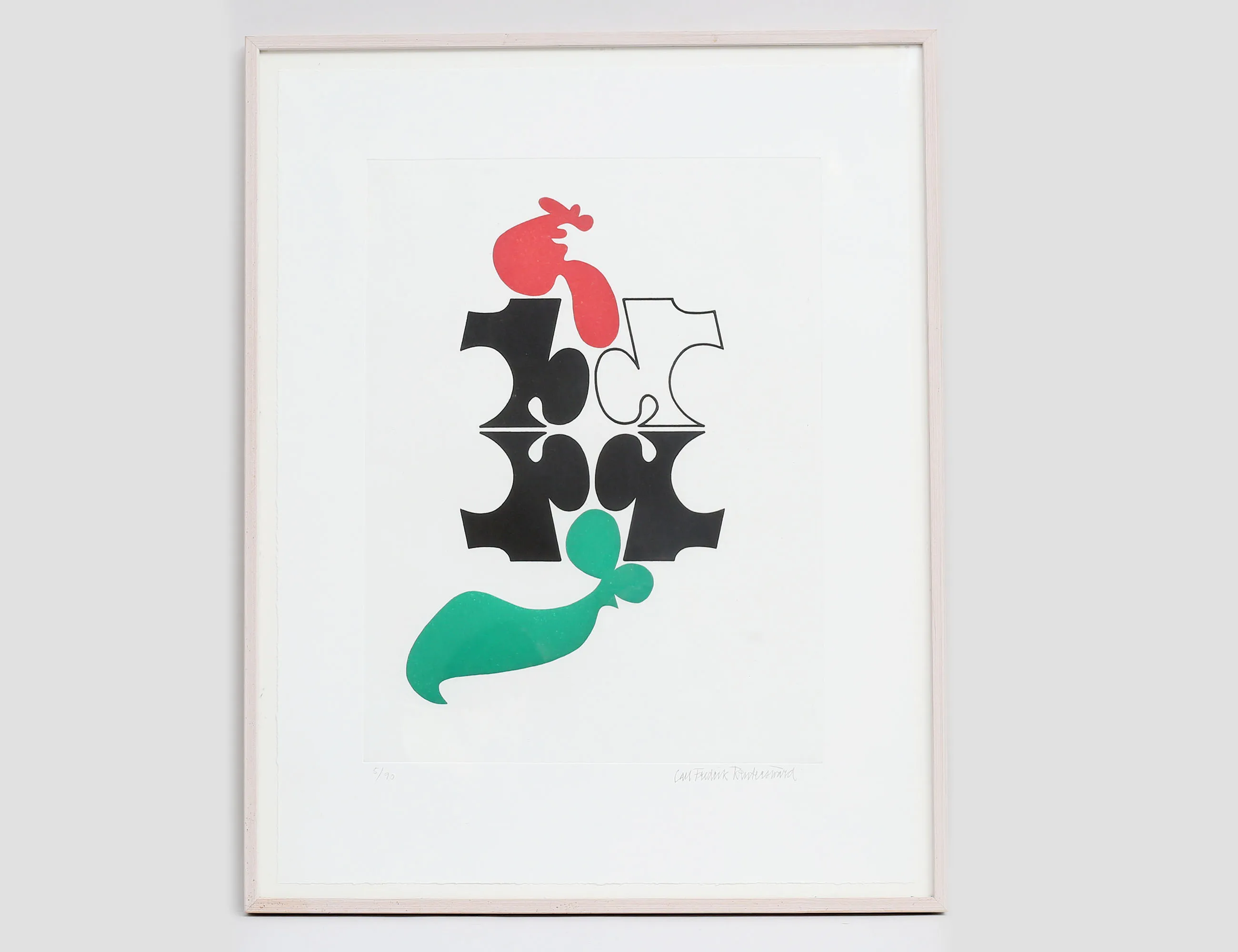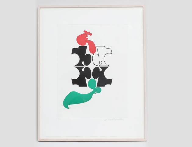 färglitografi 5/90, abstrakt komposition, signerad, bildmått 63x46, rammått 91x72