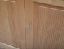 skåp "Herrgården" Åfors Möbelfabrik, björk, överdel med glasdörrar och bakomliggande hyllplan i glas, undertill ribbade skåpsdörrar med bakomliggande hyllplan, invändig belysning, märkt med mässingsplakett, höjd 185, bredd 100, djup 38