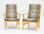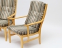 fåtöljer 1 par "Ulfåsa", AB OH Sjögren, björk, lösa stoppade plymåer, etikettmärkt, höjd 90, bredd 60