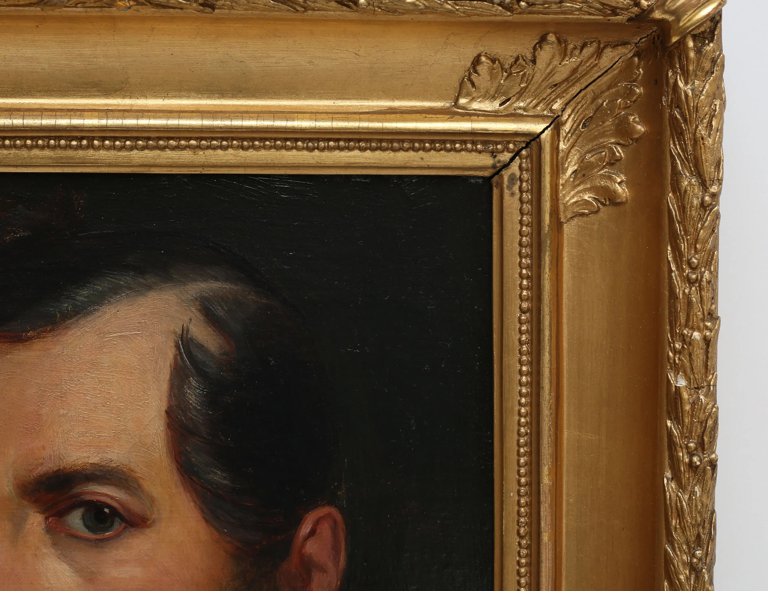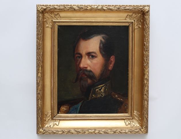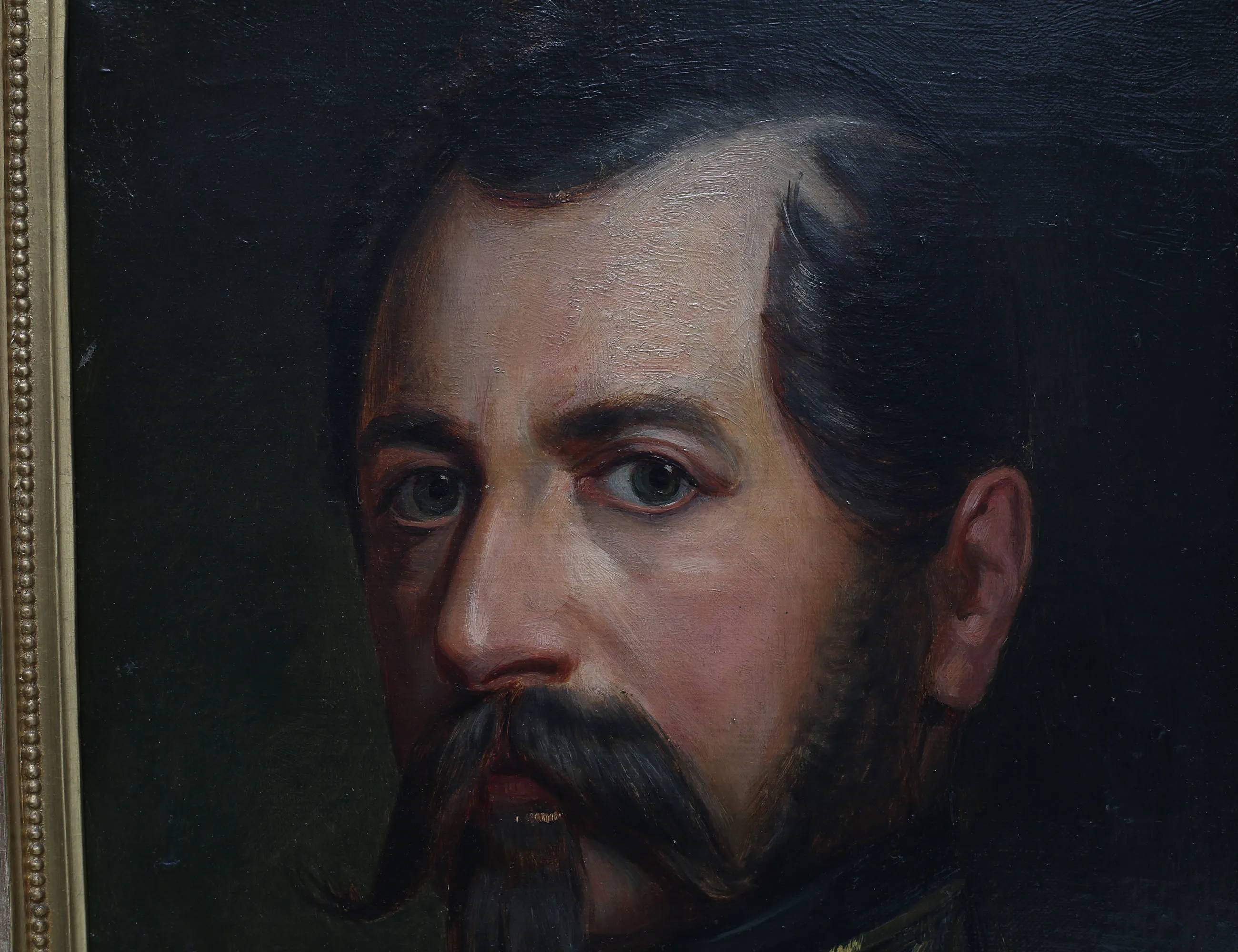 oljemålning på duk, porträtt av Kung Oscar I (1799-1859), atergo anteckning, 40x32, rammått 57x49 (smärre färgskrap, retuscher)
