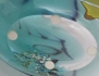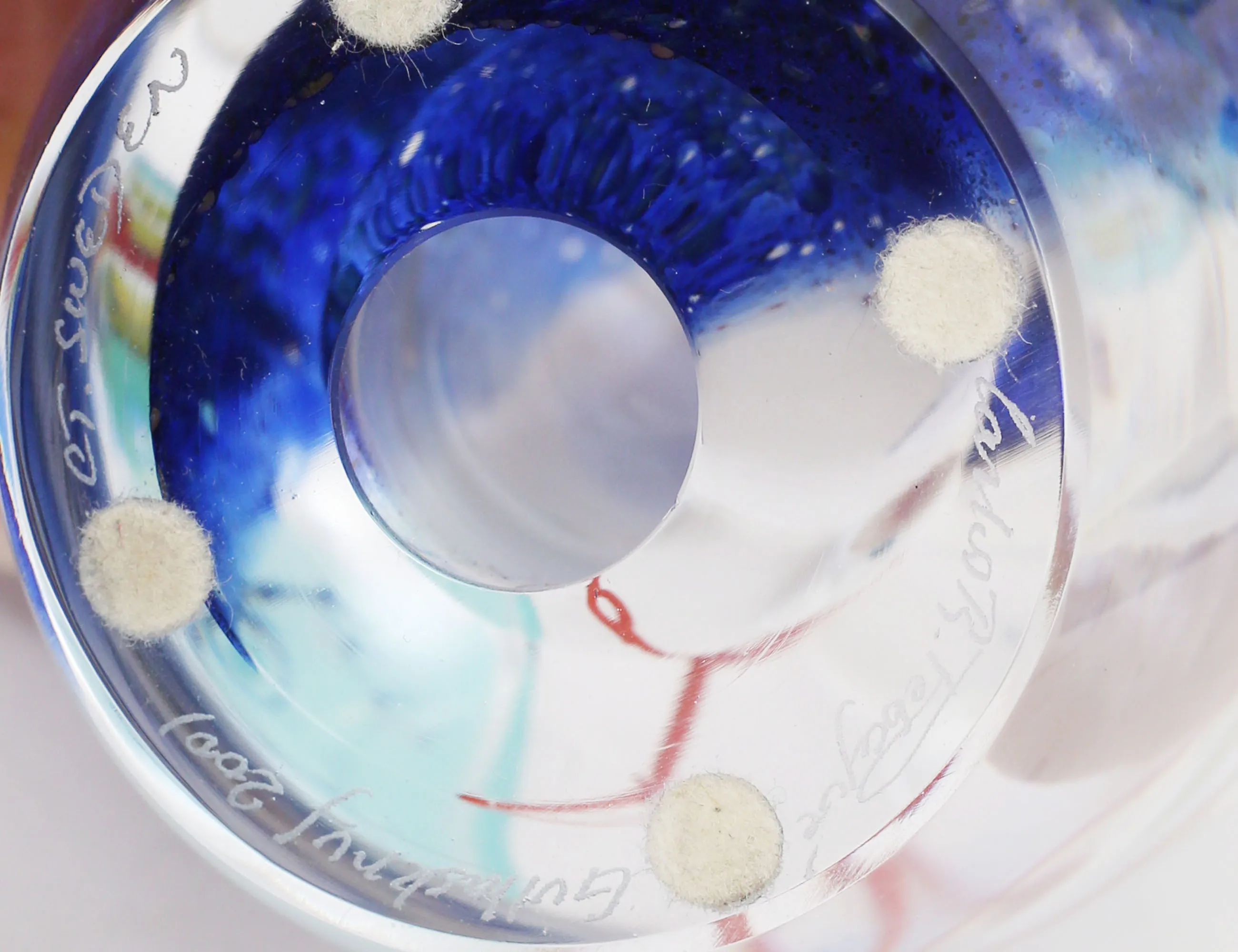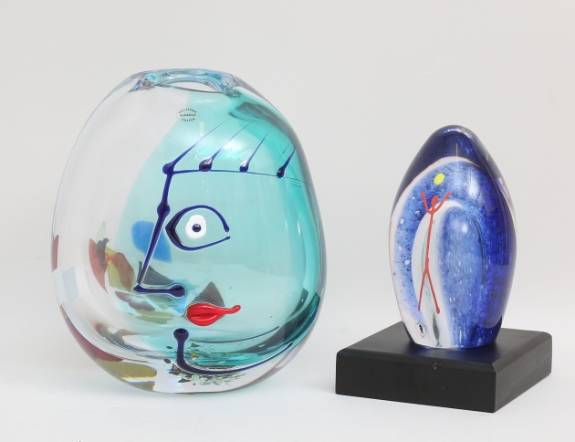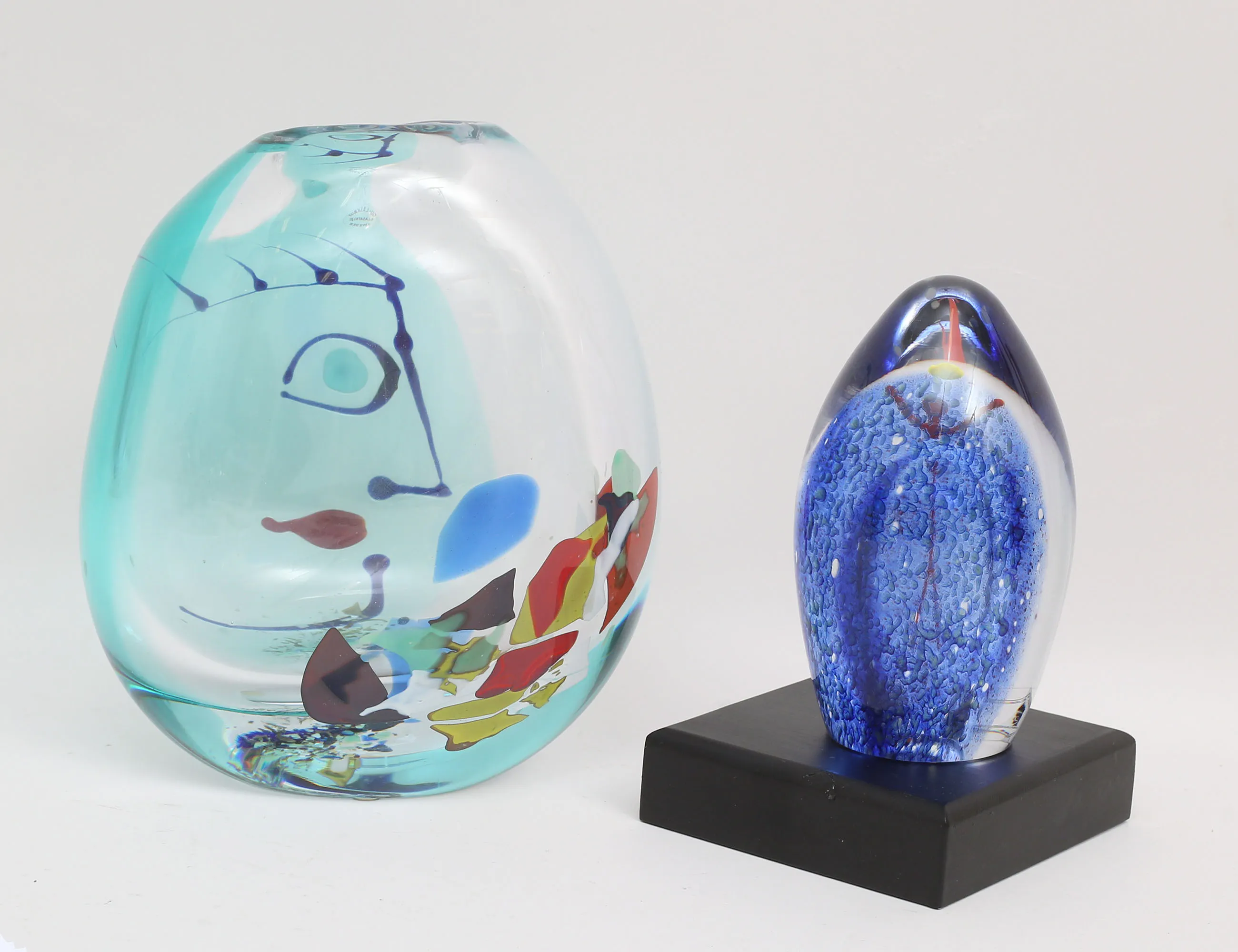 vas "Face" "Aequa" nr.42 1990-tal, signerad, lös sockel, höjd 22 (25), skulptur blåtonad med innesluten figur, signerad 2001, höjd 15 (2)