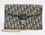 clutch 1980-tal, monogrammönstrad canvas, skinndetaljer, kedja samt spänne i pläterad metall, märkt Christian Dior made in France, 17x26 (smärre bruksslitage)