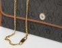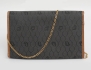 handväska/clutch, monogramcanvas med bruna skinndetaljer, guldfärgad kedja, invändigt två fack varav ett med dragkedja, märkt Christian Dior made in France, 15x22 (smärre bruksslitage samt fläckar)