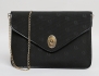 clutch/axelremsväska, svart monogramcanvas, kedja samt spänne i guldfärgad metall, märkt Christian Dior made in Paris, originalkartong medföljer, 19x26 (smärre bruksslitage, spänne med repor, låser ersatt med kardborreband)