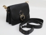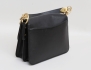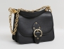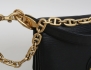 axelremsväska/crossbody, svart läder, kedja samt detaljer i borstad mässing, justerbar axelrem medföljer, invändigt 4 fack varav ett med dragkedja, närmast oanvänd, höjd 19, bredd 24