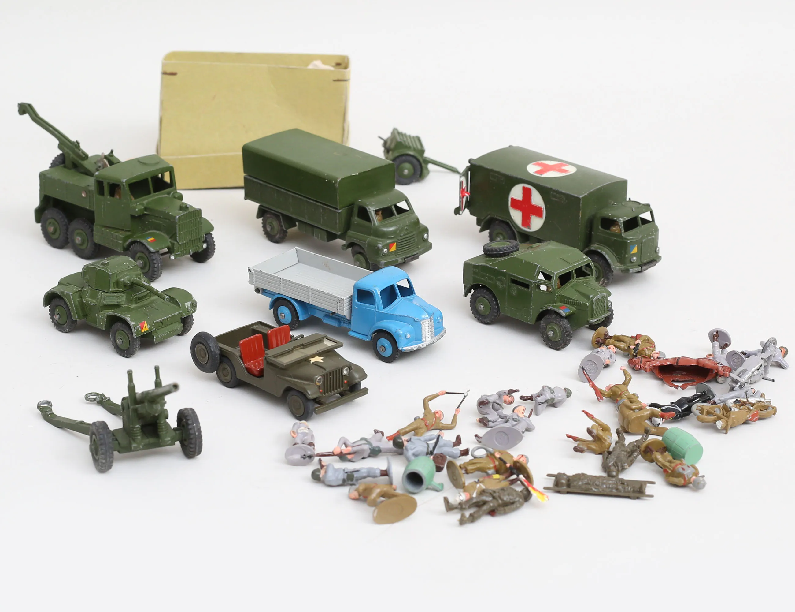 militärfordon bla. sjukvårdsbil, lastbil, scamell recovery tractor, Joep Techno Danmark, militär/western figurer