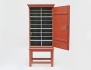 dörr med bakomliggande fackinredning, röd ådringsmålning, Proveniens: Hovrättsråd Per Gunnar Blomdahl, Jönköping, historik: auktionens skåp förvärvades omkring 1970 då Hovrätten gjorde en utrensning av inventarier sedan i arv till nuvarande ägare, höjd 163,  bredd 72, djup 49 (låset senare)