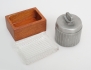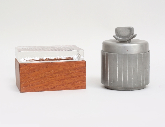 GAB Stockholm 1936, höjd 9, skrin med lock Bengt Edenfalk, lock i gjutet glas, skrin i teak, höjd 6, 10x7 (2)