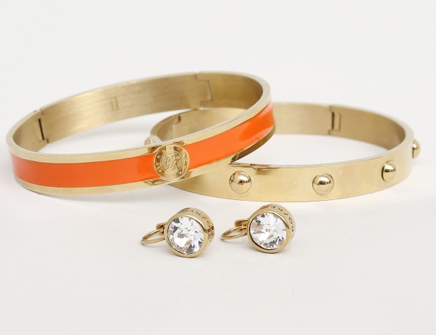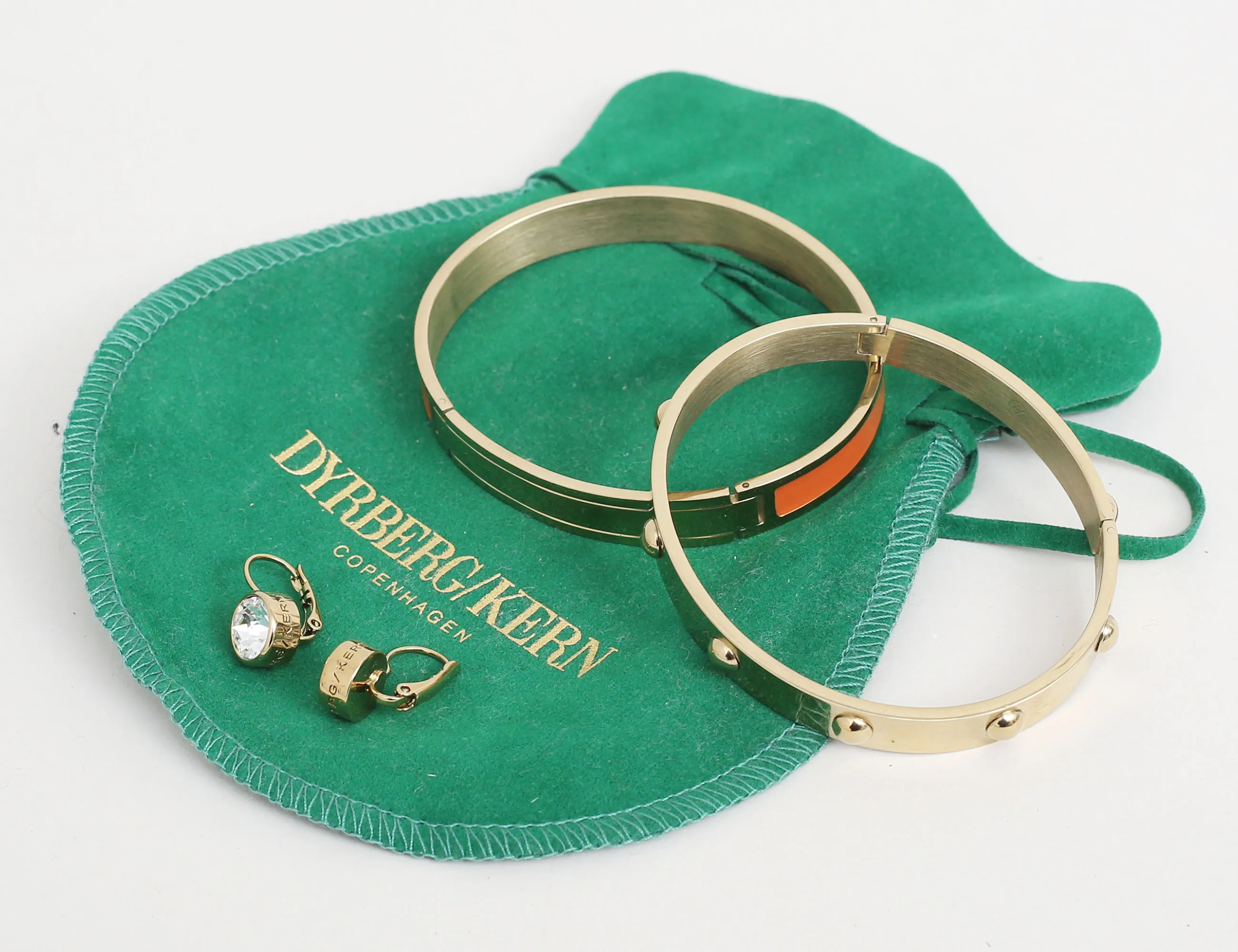 1 par örhängen modell "Louise", guld på stål, infattad Swarovski kristall, armband modell "Dott", armband modell "Pennika", närmast nyskick, originalpåse medföljer (4)