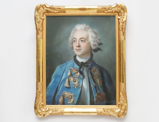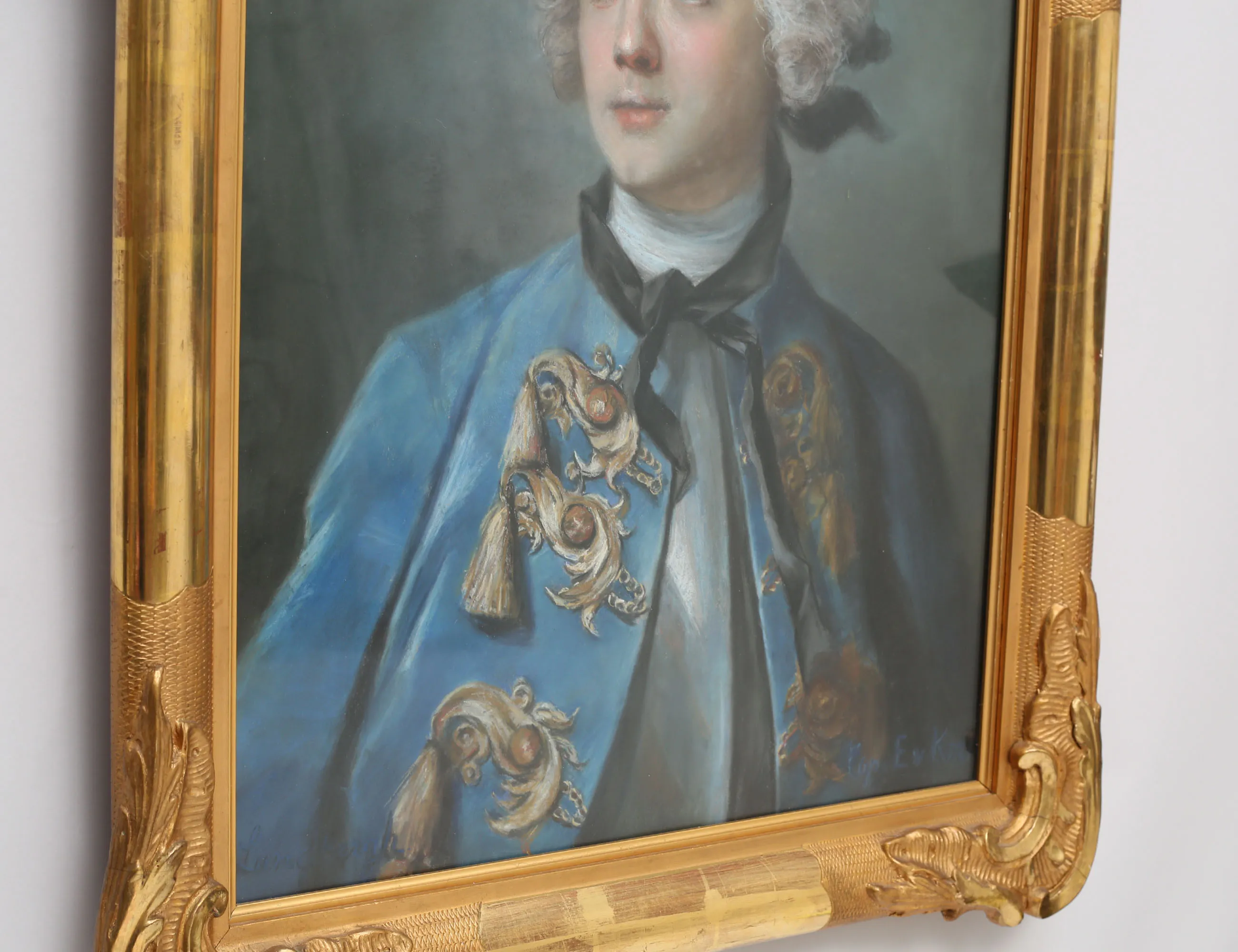 pastell utförd 1892, kopia efter Gustaf Lundberg (1695-1786), porträtt av friherre Henric Theodor Öhrnfeldt, kammarherre hos kejsarinnan Théresia av Österrike, praktfull samtida ram, bronserad och förgylld med slagmetall, atergo anteckningar, signerad, 64x50, rammått 75x62