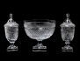 2 lockpokaler samt skål på fot "Kent", Kosta, rutslipad kristall, signerade, höjd 23/18, diameter 19 (en pokal med fotnagg) (3)