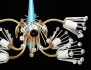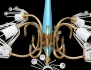 takarmatur 1950/60-tal, stomme i mässing och turkost metall, 8 ljusarmar med kulor i akryl, höjd 65, diameter 50 (smärre fläckar)