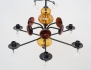ljuskrona Boda Smide sent 1900-talför 6 ljus, ornament i klarglas, glaskroppar i bärnstensfärgat glas, höjd 40 (85), diameter 47