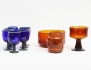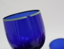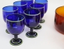 skål på fot, vas samt skål, signerade, höjd 12-16, 6 glas på fot, blått glas med grön randdekor, höjd 13 (ett glas med dekorbortfall)