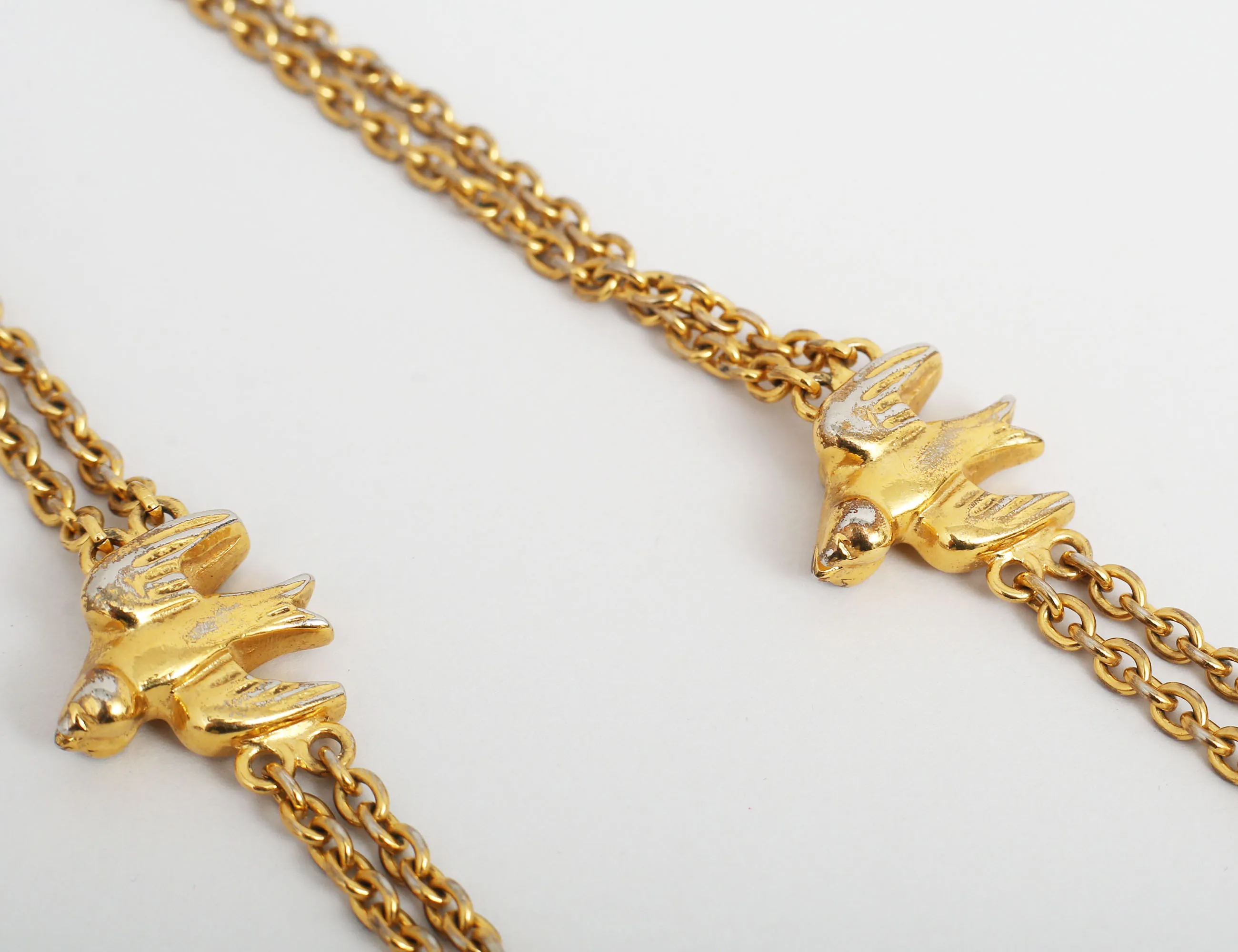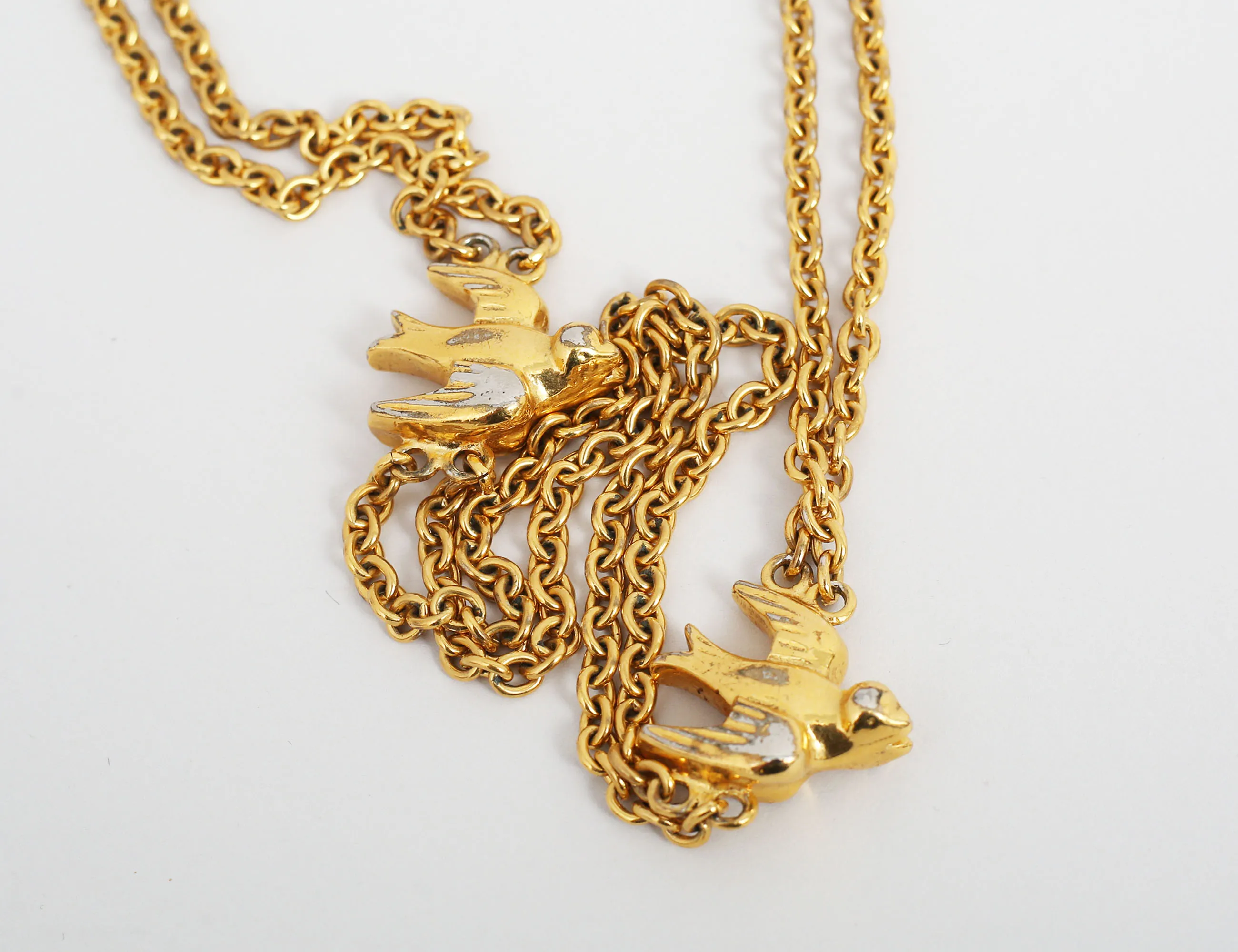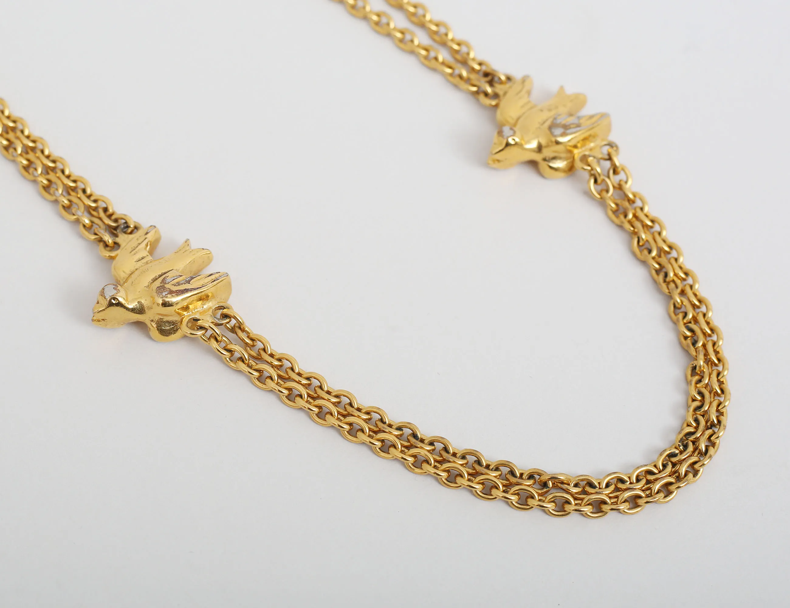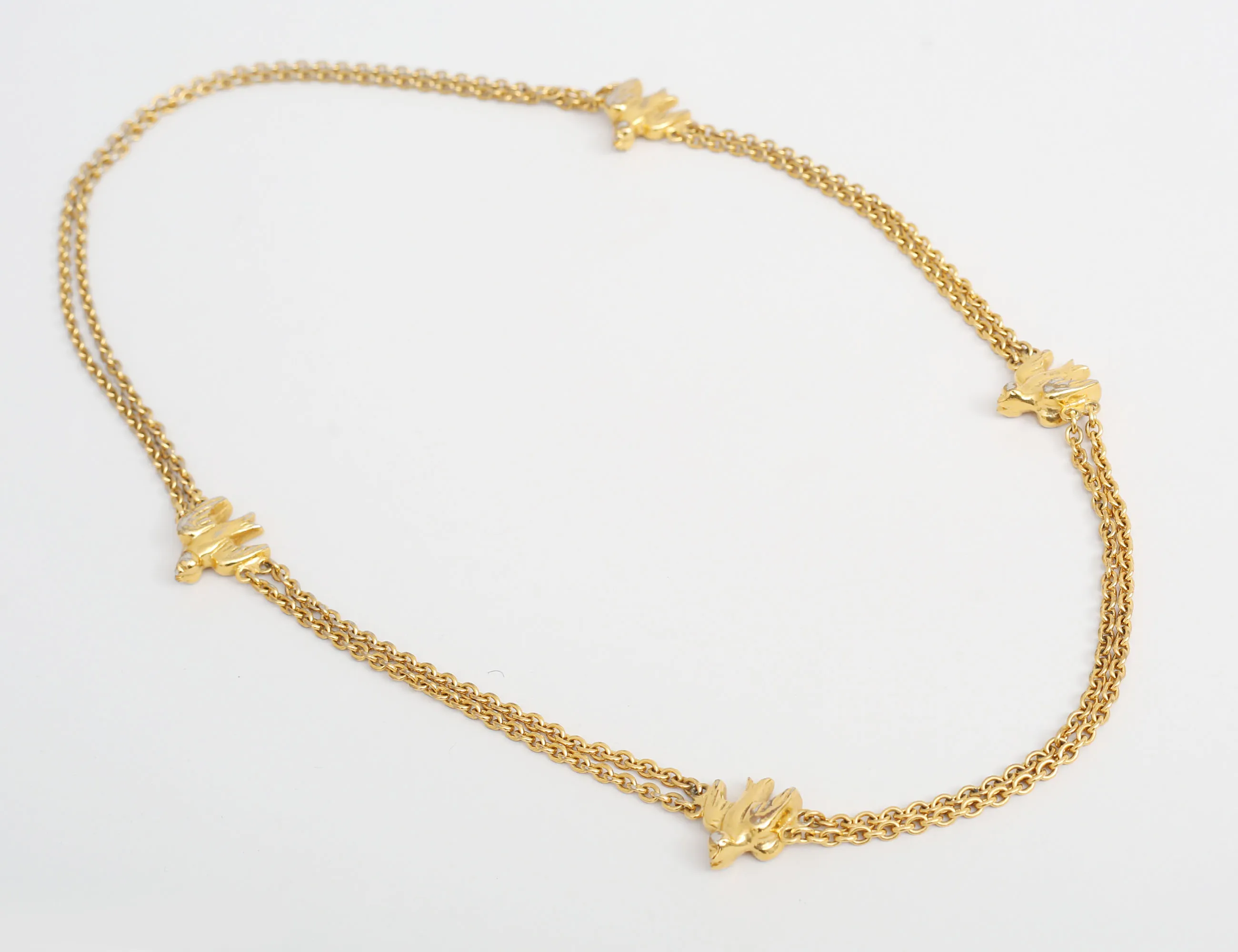 halscollier, för Firma Svenskt tenn, förgyllt tenn, dubbla kedjor med fyra duvor, längd ca. 82 (slitage)