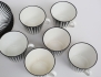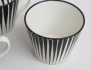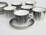 6 tekoppar med fat "Zebra", formgivna 1955, flintgods, höjd 8 (en kopp med smärre fotringsnagg, en kopp med smärre glasyrslitage)