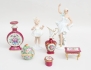 figurin Schabach höjd 24, figurin Wallendorf Tyskland, höjd 17,5, 2 dosor längd 6/8, hänkelvas och flakong med propp, Frankrike (2 limoges), höjd 15, skål med lock Herend Ungern, höjd 8,5