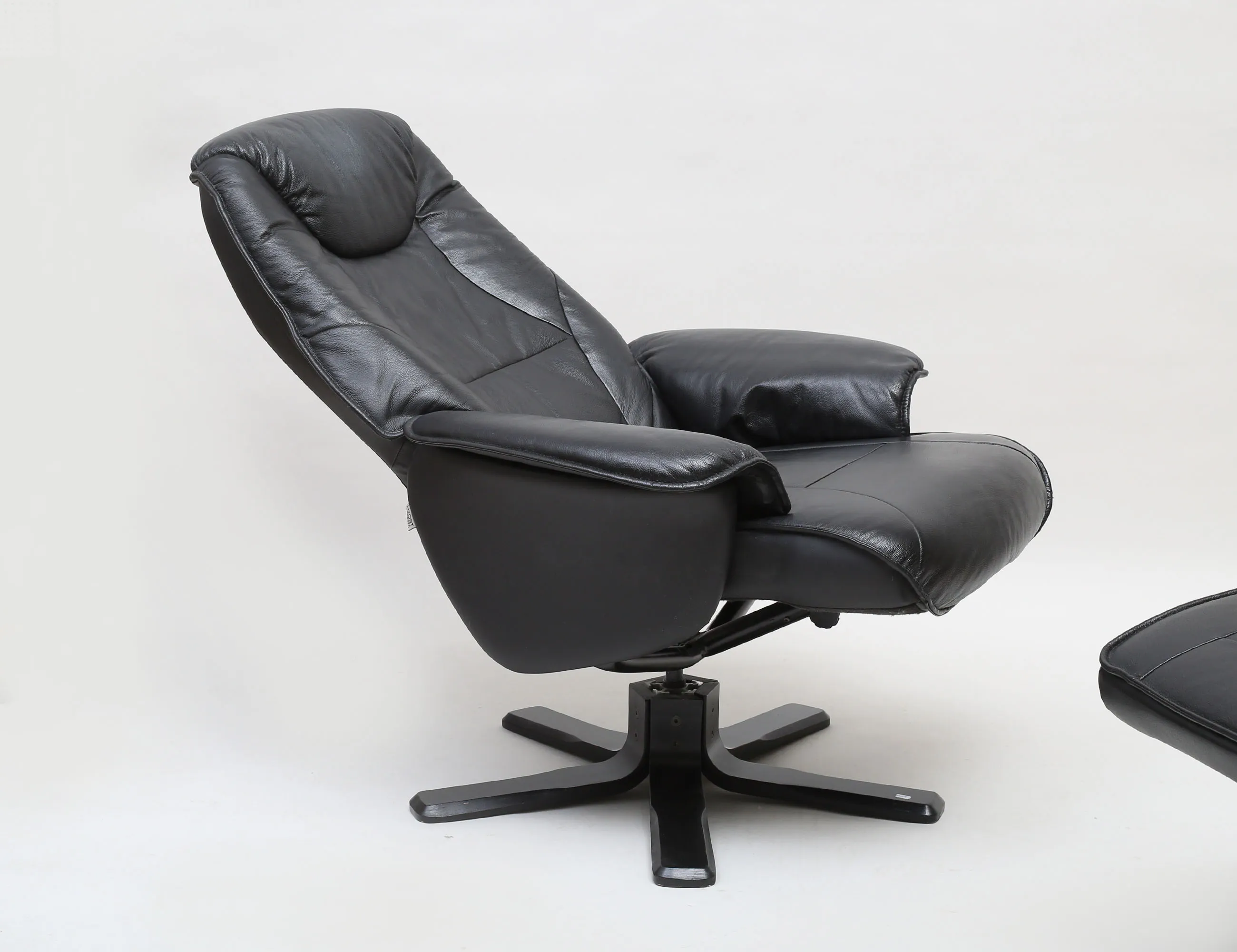 svart skinnklädsel, svartlackerad fot i trä, etikettmärkt, snurr- och justerbar, höjd 105/43, bredd 80/43 (smärre bruksslitage) (2)
