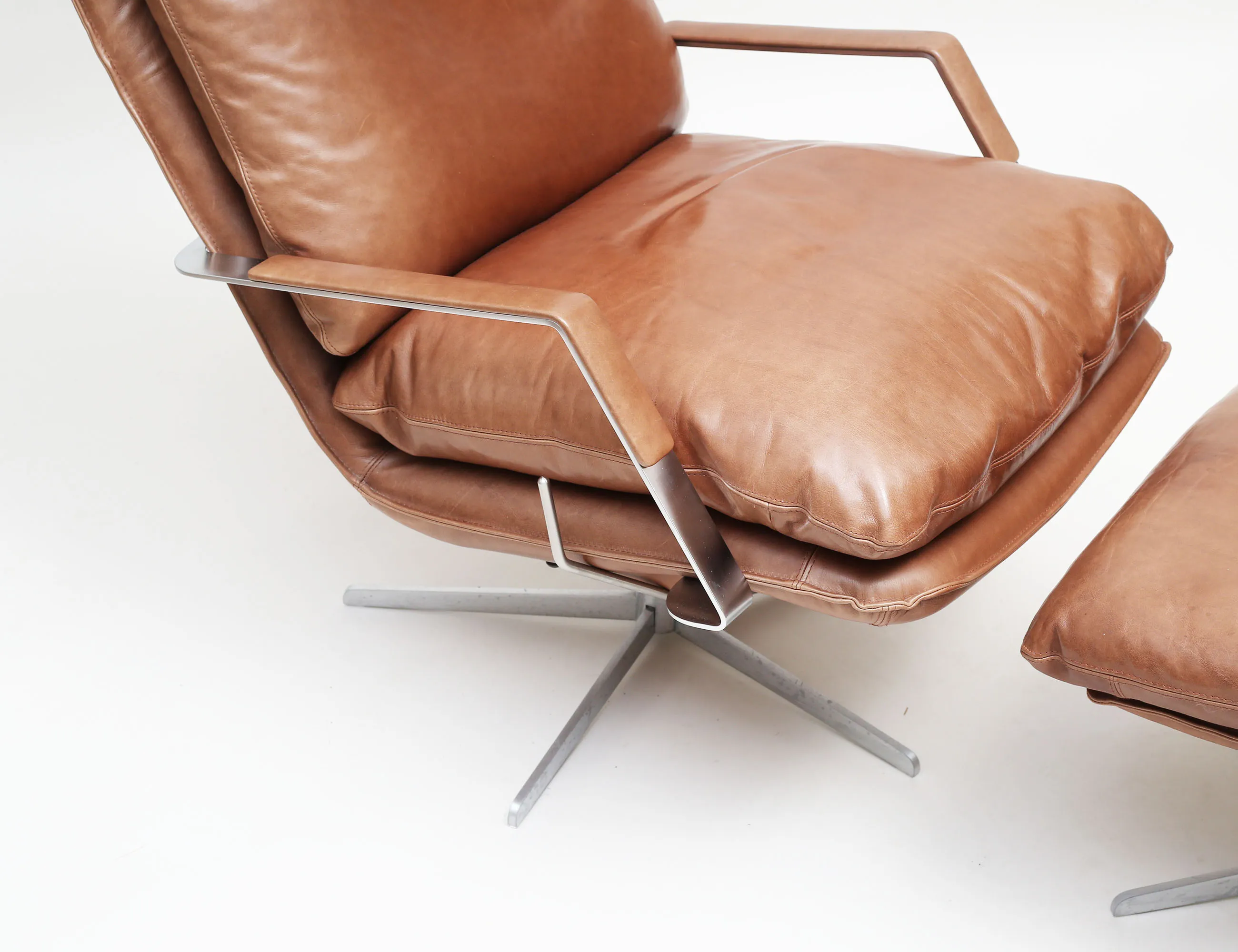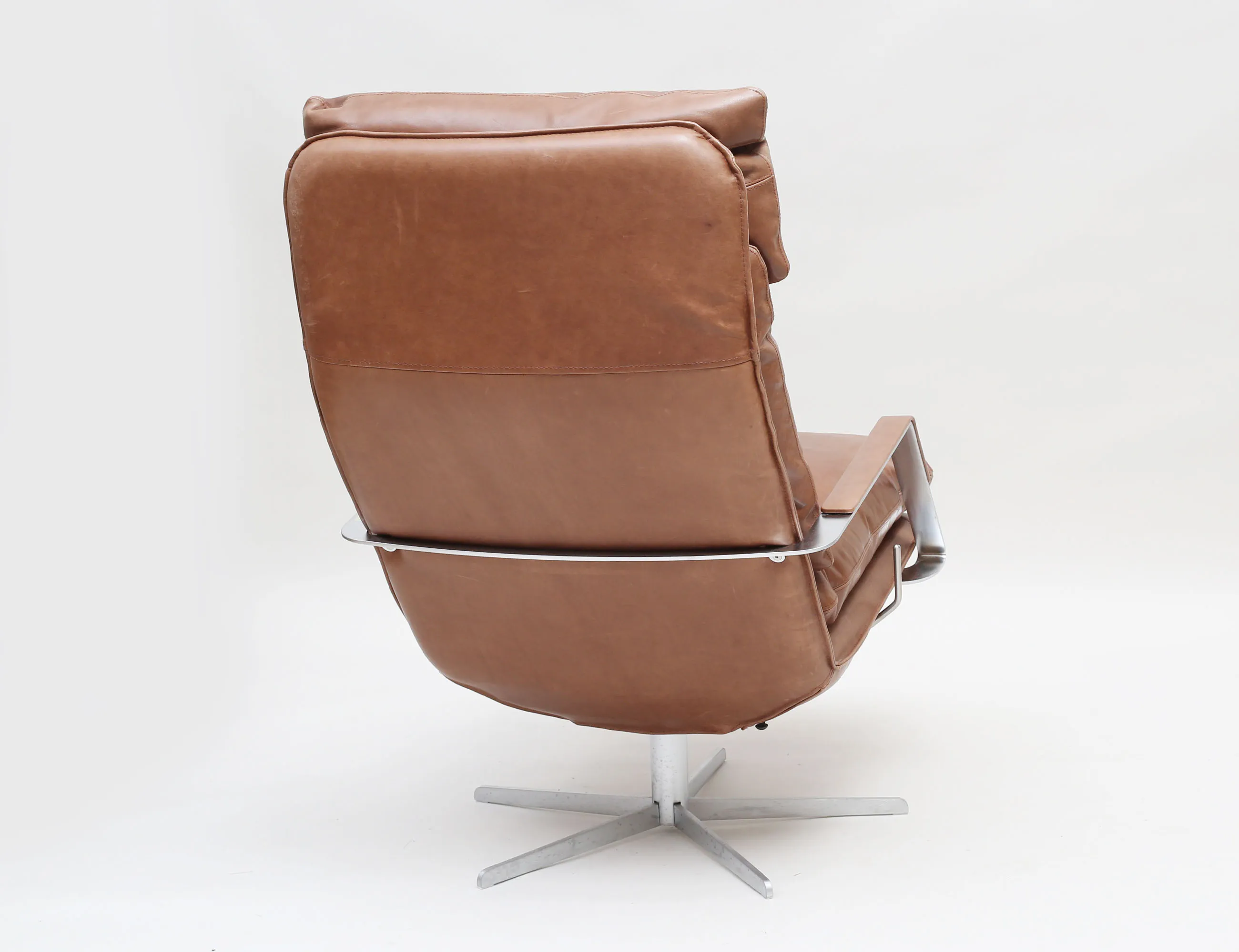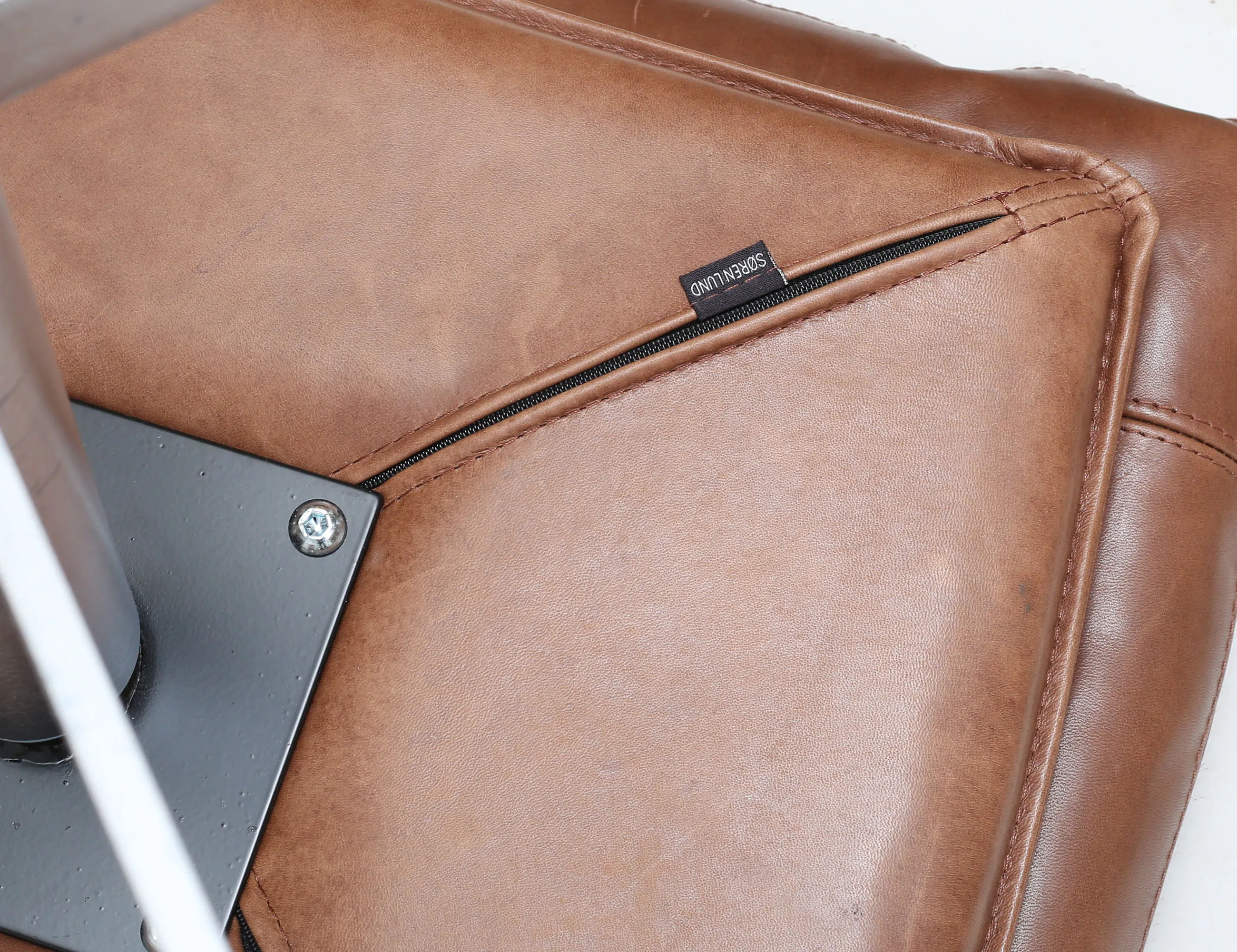 modell "SL330" Danmark 2000-tal, klädsel i brunt semianilinläder, ställ- samt snurrbar, fyrpassformad fot, stomme i förkromad metall, lös dyna i sits och rygg