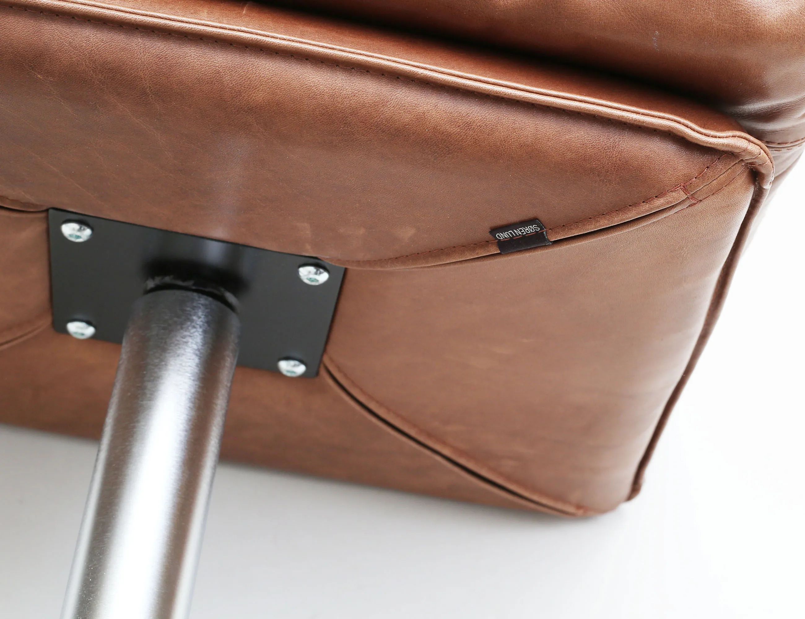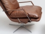 modell "SL330" Danmark 2000-tal, klädsel i brunt semianilinläder, ställ- samt snurrbar, fyrpassformad fot, stomme i förkromad metall, lös dyna i sits och rygg