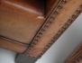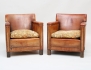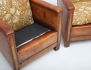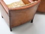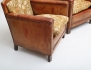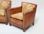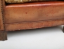 brun skinnklädsel, dekorspik i mässing, senare sits och ryggdyna klädda i textil "Golden Lilies", William Morris, höjd 69, bredd 67, djup 72 (nedsutten resårbotten, skinn med smärre skav, reva)
