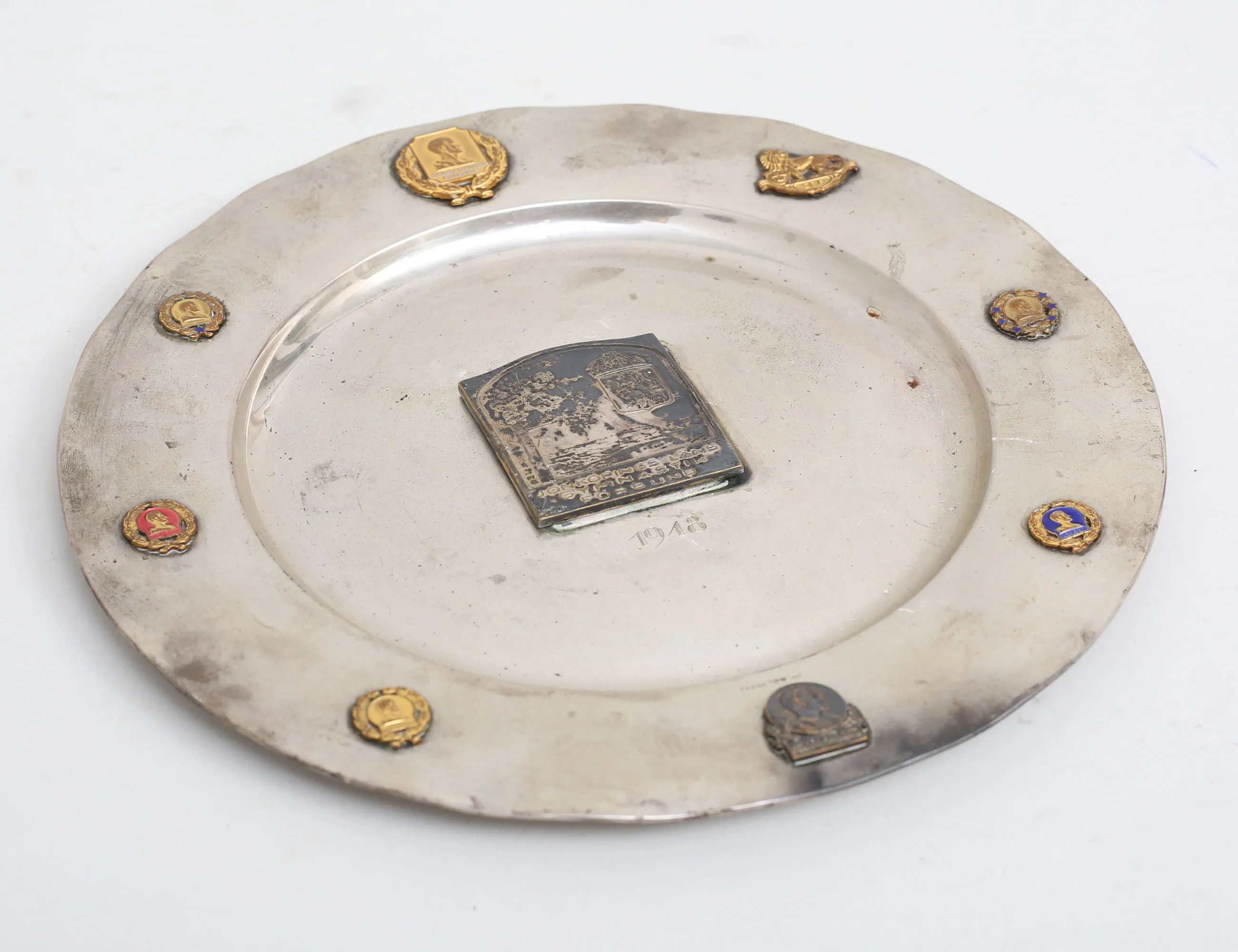 Markströms Uppsala 1946, vikt 250 gram inklusive 8 små plaketter men exklusive mittplakett, diameter 24
