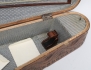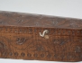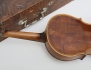 daterad 1891, intarsiadekor delvis pärlemor, samtida låda i trä med karvsnitt, längd 60 (lådan med avslag och maskstungen, saknas ett fäste vid låsningen, fiolen med smärre nagg)