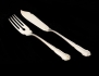 silver, CG Hallberg Stockholm 1940-tal, 10 gafflar samt 12 knivar, vikt 1045 gram, längd 18/21 (2 gafflar i samma modell nysilver medföljer) (22)
