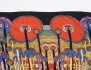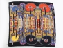 scarf siden, "Achtung Gras" 1990 by Gruener Januia, AG/Glarus/Switzerland, printed by hand at Giovanni Bianchi Como/Italy, 115x115 (smärre fläckar på en orange rundel)
