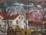 oljemålning på pannå, "Husrivning" (vid Husqvarna fabriken), signerad -50, atergo märkt No 2, Gösta var den yngsta i gruppen "Nio Unga" där även Sven-Erixson x:et ingick, 61x72, rammått 72x87