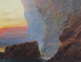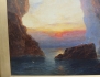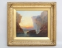 oljemålning på duk, klipplandskap med fåglar i solnedgång, signerad 1894, atergo anteckningar och etiketter, 38x46, rammått 65x69