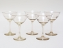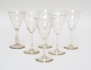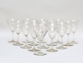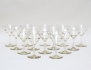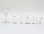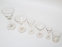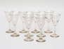 glasservis 72 delar "Fylgia", Eda Glasbruk 1930-tal, ljust gultonat glas, merparten signerade, 15 vin höjd 17, 14 champagne/cocktail höjd 12,5, 6 snaps, 5 starkvin, 5 selter, 10 likör (ett parti med naggade medföljer)