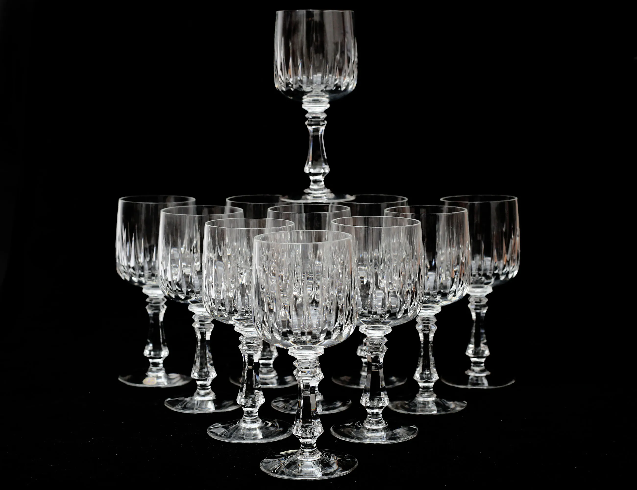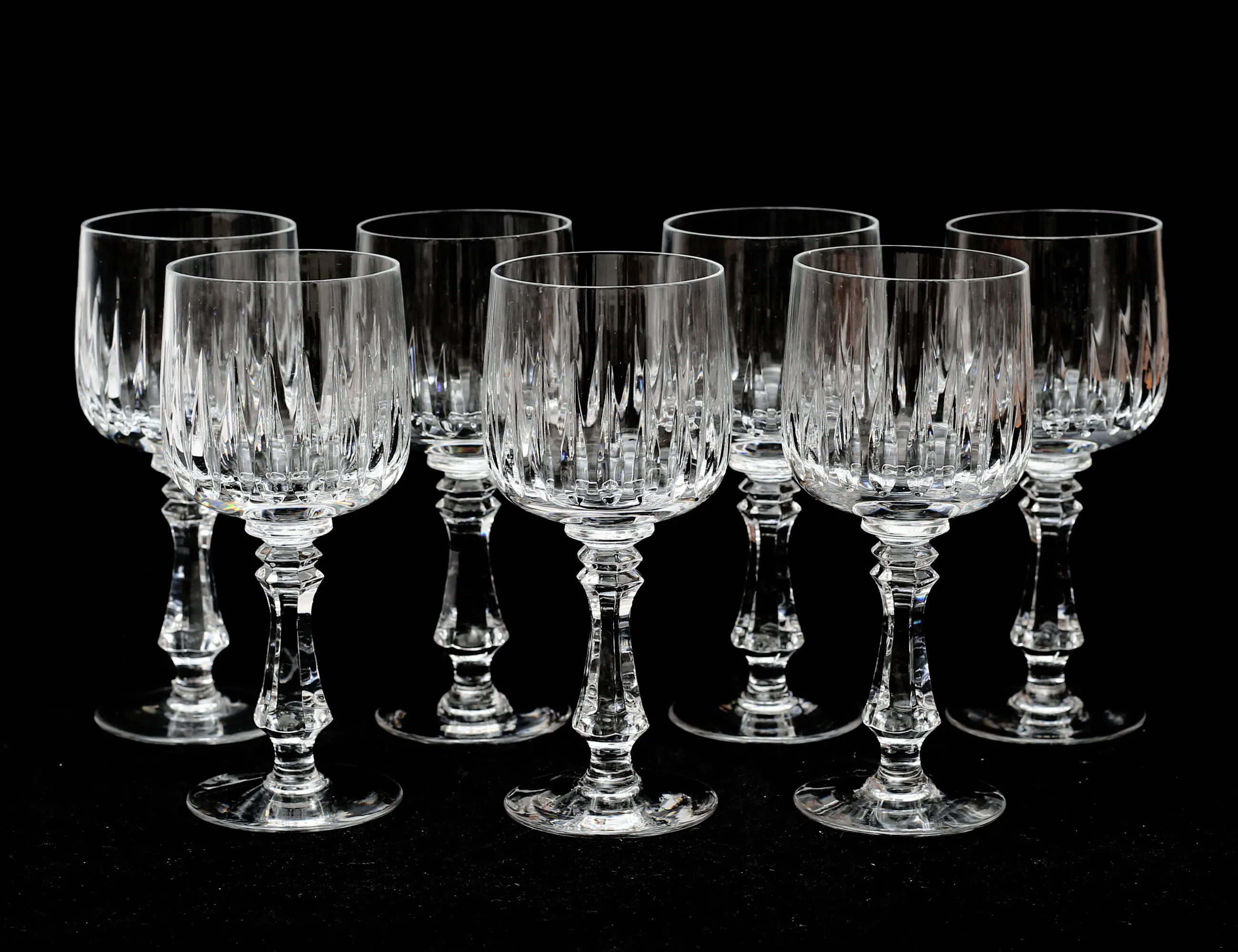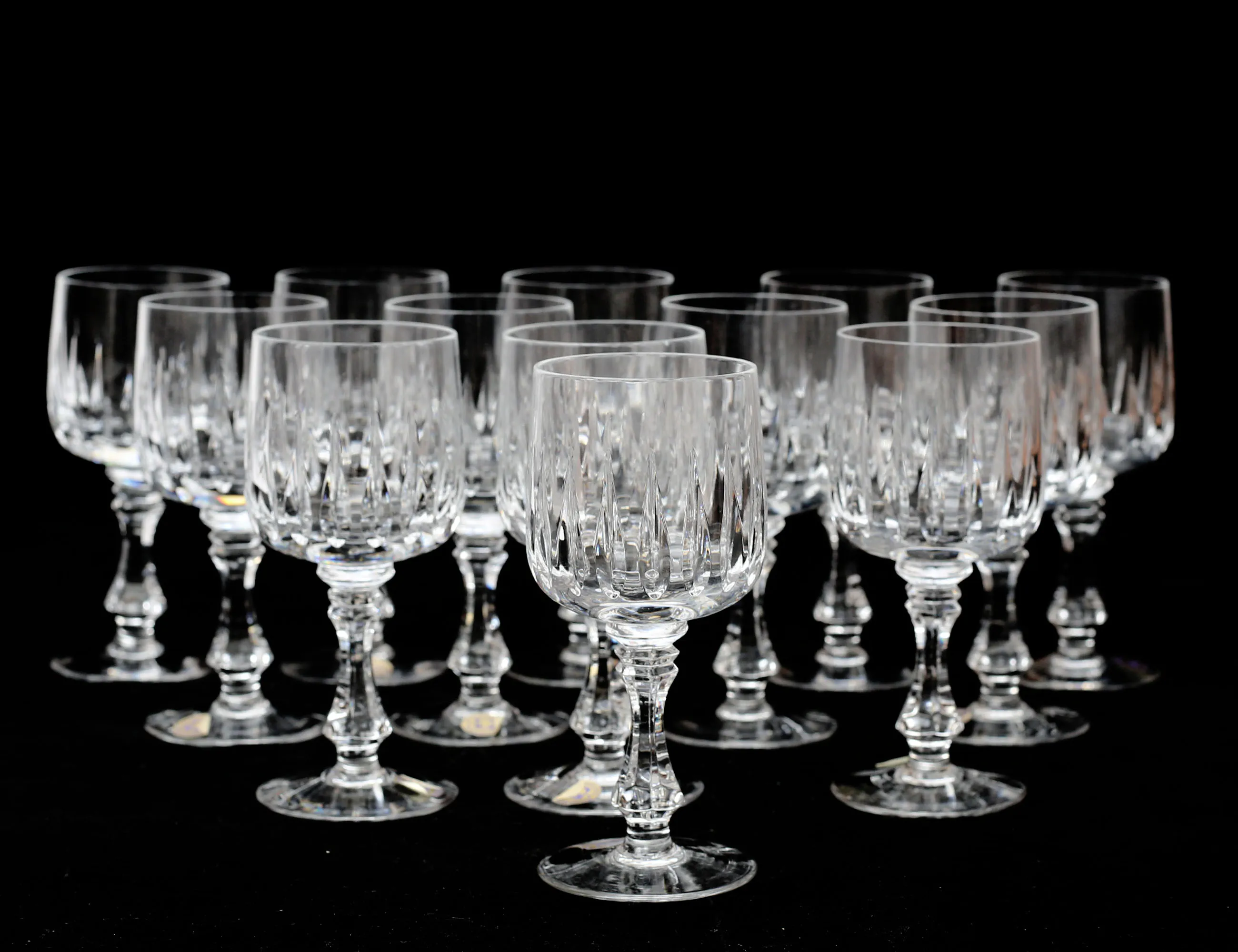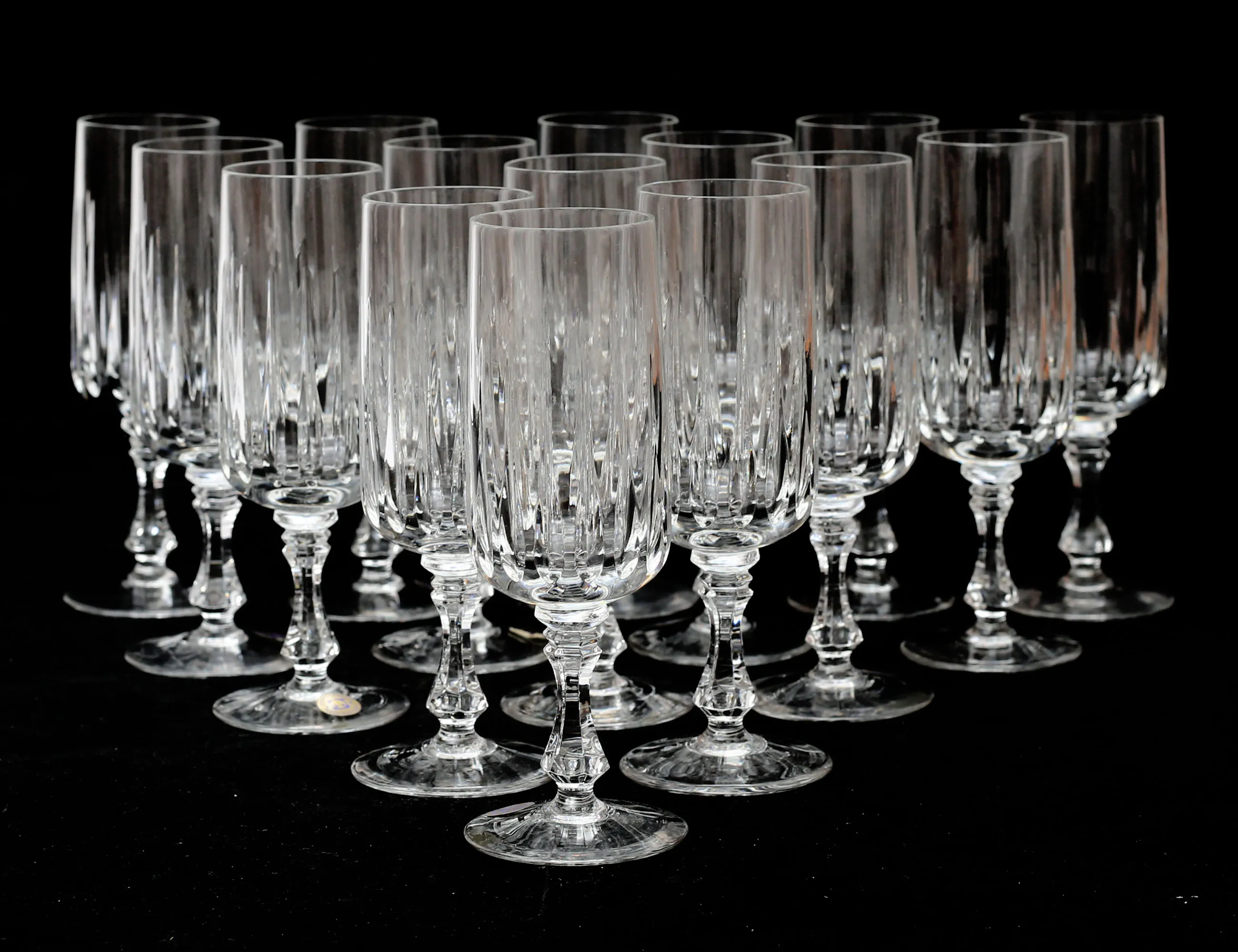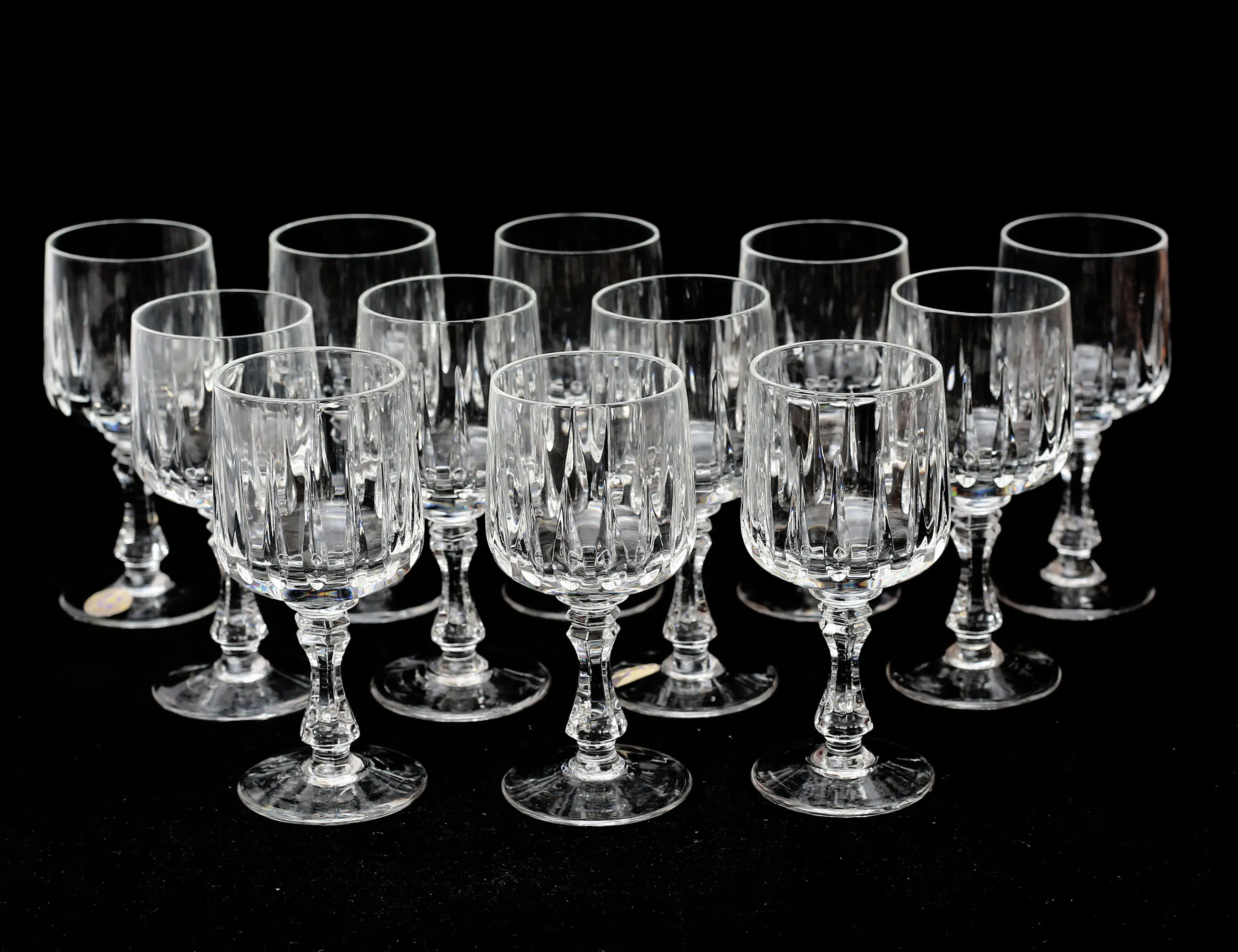 etikettmärkta Lausitzer Bleikristall Tyskland, 15 champagne, 11 vin, 7 vitvin, 13 portvin, 13 starkvin, 12 likör, 17+18 selter, 16 öl