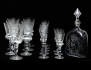 7 vinglas, 5+3 snapsglas samt karaff, dekor av Gustaf III:s emblem, Reijmyre, höjd 18/16/14 (1 vinglas med micronagg samt 3 med nedslipad kant medföljer)