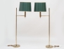 modell B-018 1960-tal, stomme i mässing, grönlackerade skärmar med guldkant, höjd 155 (smärre bruksslitage)