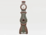 Västergötland/Västra Såland, 1700-talets andra hälft, träskuren dekor med polykrom bemålning, urtavlan märkt Sandström, urverk i mässing med dubbla klangskålar, auktionens golvur finns avbildat och omskrivet (sid 168) som med förfalskad signatur på urtavlan i boken "Allmogeurmakeriet i Västergötland och i västra Småland" av Einar Magnusson, höjd 215, bredd 48 (smärre torksprickor, visarna något lösa)