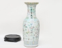 sen Qingdynasti c.1900, heltäckande polykrom emaljdekor, hänklar i form av fohundar, lös träsockel, höjd 58 (64)
