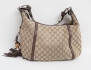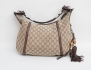 väska "Gucci Techno Horsebit Medium Hobo", beige och brun monogramcanvas, läderdetaljer, silverfärgad metall, axelrem, två tofsar med bambudetaljer, invändigt fyra fack varav ett med dragkedja, märkt GUCCI made in Italy på läderetikett samt numrerad 240261-002058, höjd 29, längd 41 (smärre bruksslitage, fläckar)